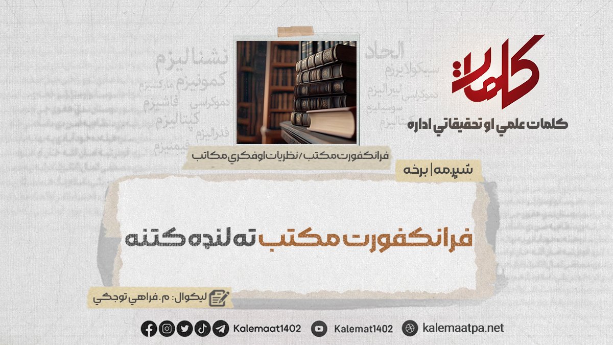 شریکول Facebook Twitter Telegram Copy Link WhatsApp لیکوال: م. فراهي توجګي فرانکفورت مکتب ته لنډه کتنه (شپږمه برخه) د فرانکفورت مکتب اصول: د انتقادي نظریې د مکتب غړو په عمومي ډول پر هغو محوري اصولو هوکړه درلوده چې باید د څېړنیزو فعالیتونو د اساسي بنسټونو په توګه ومنل شي او د مکتب د پلانونو په سر کې ځای ولري. تر ټولو مهم هغه یې په لاندې ډول دي: ۱. پانګوال نظام له جدي بحران سره مخ دی. د دغه بحران د دقیق درک غوره لار کومه ده او د سیاسي او اقتصادي چارو ترمنځ څه ډول اړیکه موجوده ده؟ ۲. ټولنیز مناسبات د جدي بدلونونو په درشل کې دي. همدا بدلونونه کوم لوري ته روان دي او په فرد یې اغېز څه دی؟ ۳. اقتدارپالنه (اتوریتاریانیزم) او د بوروکراتیکو نهادونو پراختیا په ظاهره د ورځني واکمن نظم په څېر ښکاري. دا پدیدې څه ډول درک او تحلیل کیدلی شي؟ ۴. په اروپا کې د کارګري خوځښتونو مبارزې په نړۍ کې د کارګرانو د واحدې مبارزې بڼه خپله نکړه. د دې کار عوامل او په وړاندې یې خنډونه کوم دي؟ ۵. د کلتور بېلابېل ډګرونه تر مداخلې او سختې څارنې لاندې نیول شوي او د لوبې وسایل ګرځېدلي دي. ایا کومه نوي ایډیالوژي په جوړېدو ده؟ که ځواب هو وي، نو دا نوې ایډیالوژي څه ډول رامنځته کېږي او د افرادو په ورځني ژوند څه اغېز لري؟ ۶. توتالیتاریانیزم څنګه وتوانېد چې د نازیسم او فاشیسم په چوکاټ کې د مرکزي او جنوبي اروپا ټوله سیمه تر خپل واک لاندې راولي؟ ۷. په روسیه او لوېدیځه اروپا کې د مارکسیزم د ماتې په پام کې نیولو سره ایا لا هم د داسې ټولنیزو کارګرانو شتون ته هیلهمن کېدلی شو چې د مترقي بدلونونو د رامنځته کولو وړتیا ولري؟ ایا مارکسیزم یواځې یو وچ ارتودوکسي آیین نه دی؟ هېره دې نه وي چې په پیل کې د یاد مکتب د تیوریستانو د افکارو سرچینه مارکسیستي تفکر و او په بنسټیز ډول د مارکس له افکارو او نظریاتو اغېزمن وو (البته پر دوی د هګل اغېز هم له پامه نشي لویدلی)، خو په وروستیو پنځوسو کلونو کې یې له خپلو لومړنیو اصولو ډېر واټن اخیستی دی. د دوی اساس پر پانګوال نظام او لیبرال ډیموکراسۍ ولاړ و؛ خو د مکتب د لومړنیو کلونو له تېرېدو وروسته هېڅ داسې واحده تیوري پاتې نه شوه چې د ټولو غړو د موافقې وړ وګرځي. د فرانکفورت مکتب د تیوریستانو موخه دا وه چې په پانګوالو ټولنو کې سیاسي، اقتصادي او کلتوري بدلونونه رامنځته کړي؛ هغوی غوښتل چې د خپلو آثارو او د طبقاتي ټولنو د بنسټیزو تضادونو د افشا کولو له لارې مثبت ټولنیز بدلونونه رامنځته کړي. لکه څنګه مو چې مخکې یادونه وکړه د فرانکفورت مکتب لوری یو انتقادي لوری دی. یاد مکتب د ارتودوکسي مارکسیزم له تجربو څخه په استفادې هڅه کوي چې د قضایاوو پر نقادانه اړخ ډېر ټینګار وکړي او د ابزاري عقلانیت پر وړاندې له نقادانه عقلانیت څخه دفاع وکړي. په ټوله کې د فرانکفورت انتقادي مکتب له نظره هغه عقلانیت چې پخوا یې د روښانفکرۍ رول لوباوه، په نننۍ مدرنه نړۍ کې یې د ابزاري عقلانیت بڼه غوره کړې ده؛ داسې عقلانیت چې په پرلپسې ډول د ټولنې د صنعتي کېدو په بهیر کې د فردیت د لهمنځوړلو په لټه کې دی. هغه هم په داسې یوه نړۍ کې چې پر طبیعت د تسلط لپاره له اداري ـ سازماني پروسو ابزاري استفاده کیږي. د فرانکفورت مکتب غړي په دې برخه کې د فرانکفورت مکتب څلور تر ټولو مشهور غړي درپېژانو: ۱. ماکس هورکهایمر ماکس هورکهایمر په ۱۸۹۵ ز کال کې د آلمان په زولینګن ښار کې زېږېدلی او په ۱۹۷۳ ز کال کې په نورنبرګ کې وفات شوی دی. نوموړی د فرانکفورت مکتب او انتقادي نظریې له بنسټایښودونکو څخه ګڼل کېږي. دی د کانتي او مارکسیستي فلسفې له مهمو څېرو څخه هم شمېرل کېږي. هورکهایمر باور درلود چې ایډیالوژۍ خطرناکې کېدای شي؛ ځکه د فکرونو او اندونو چوکاټ ټاکي او په ټوله کې بحراني لیدلوری کمزوری کوي. ده همدارنګه ټینګار درلود چې فلسفه او ټولنیز علوم باید په بشپړ ډول دا درک کړي چې څه ډول ټولنیزې ایډیالوژۍ، اقتصاد او سیاست د افرادو پر ورځني ژوند مستقیم اغېز لري. د هورکهامیر د مهمو آثارو له جملې لاندې آثار یادولی شو: خسوف خ