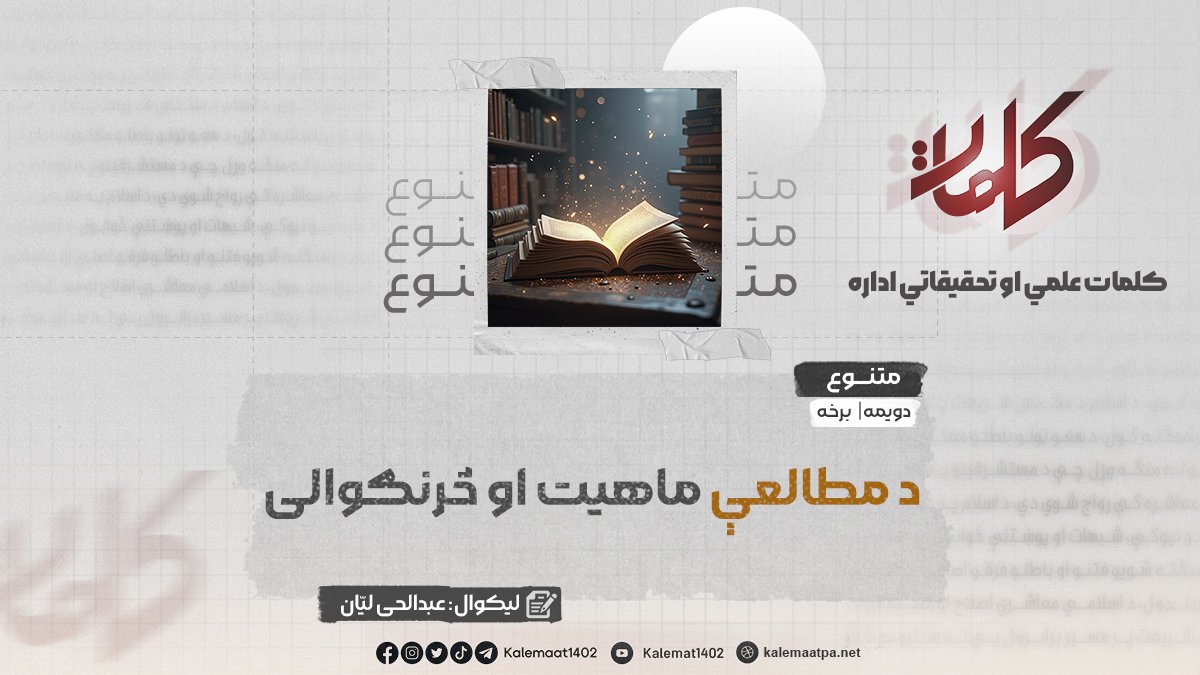 تاسو په Home»متفرقه»د مطالعې ماهيت او څرنګوالۍ (دویمه برخه)