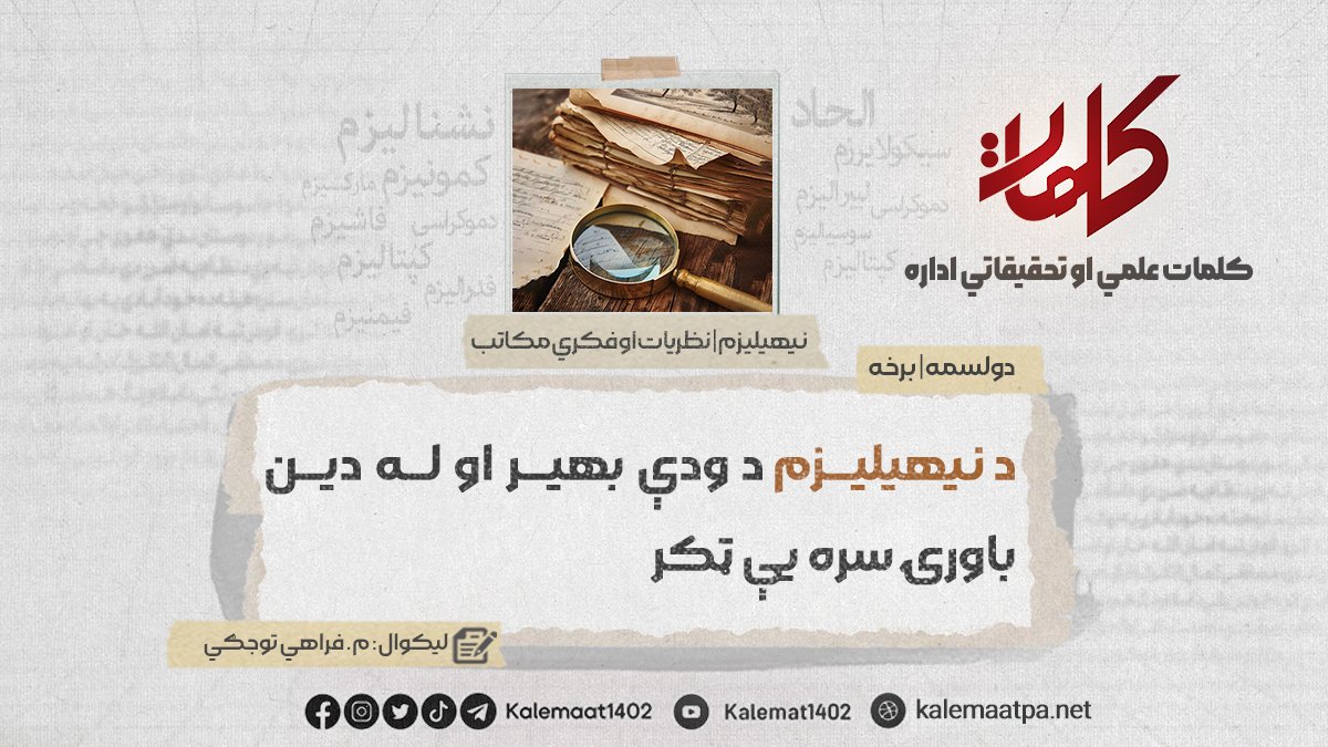 (۲) د روښانتیا په اصطلاح نیهیلیزم یو روښانه او ټاکونکی مثبت اړخ لري. دا اړخ د نفسي ارزښتونو، د عامه پالونکو اخلاقياتو او د سيکولريستي ټولنيزو سياسي لارښوونو د فورمول بندۍ او نظريې جوړونې کار ترسره کوي، چې د ماډرن ایډیالوژیو په بڼه راڅرګندېږي او د اخلاقي ښوونځیو، د حقوقي او اقتصادي نظامونو د نظري موډلونو جوړولو مسوؤلیت پر غاړه لري.