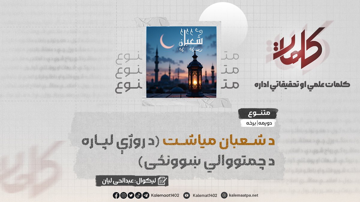 لیکوال: عبدالحی لیان د شعبان میاشت (د روژې لپاره د چمتووالي ښوونځی) (برخه: ۲) د…