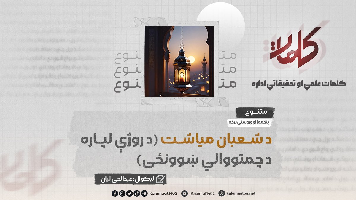 لیکوال: عبدالحی لیان د شعبان میاشت (د روژې لپاره د چمتووالي ښوونځی) (برخه: وروستۍ ۵)…
