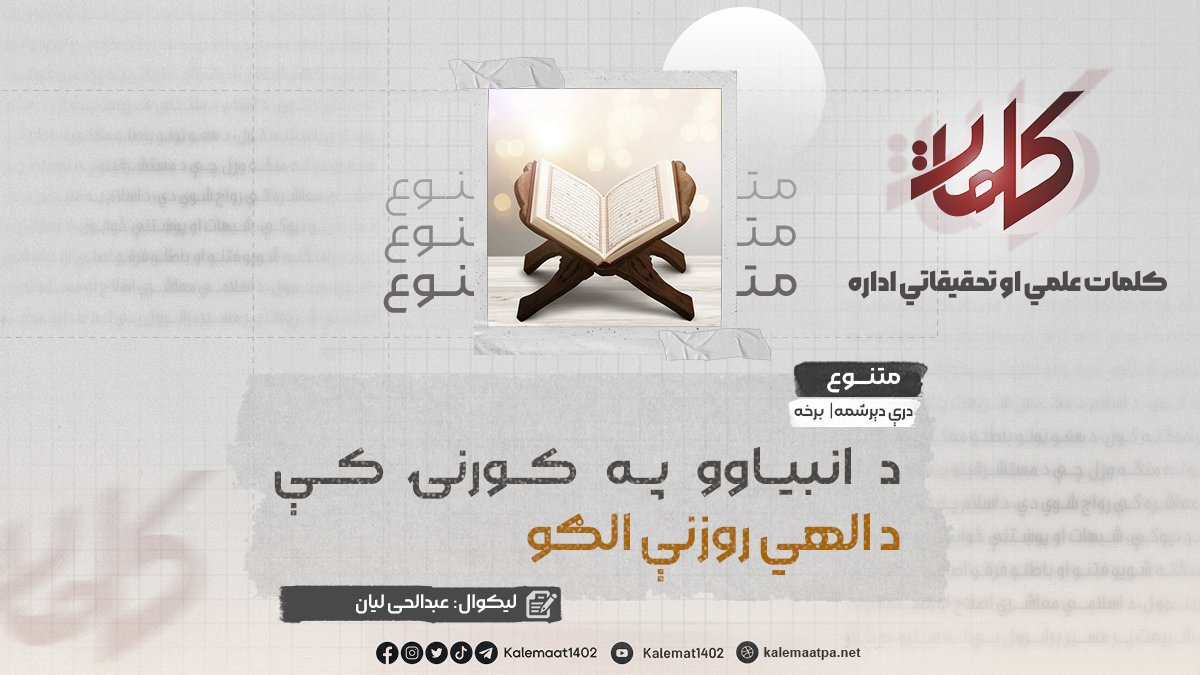 لیکوال: عبدالحی لیان د انبیاوو په کورنۍ کې د الهي روزنې بېلګې (برخه: ۳۲) د…